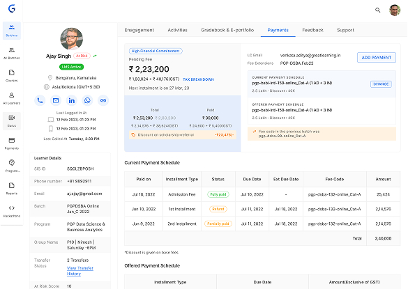 - Context, communication & follow-up history for a learner is scattered.