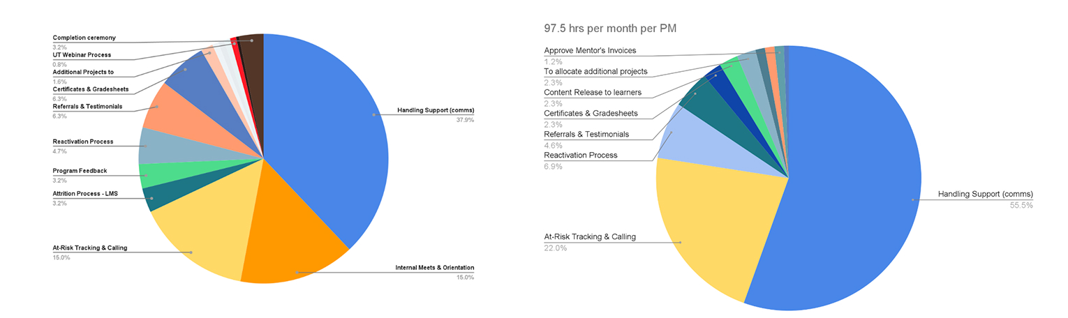 After the release, myself and the product team collaborated with several experimental teams to assess the improvements in the number of learners each Program Manager (PM) could handle.
