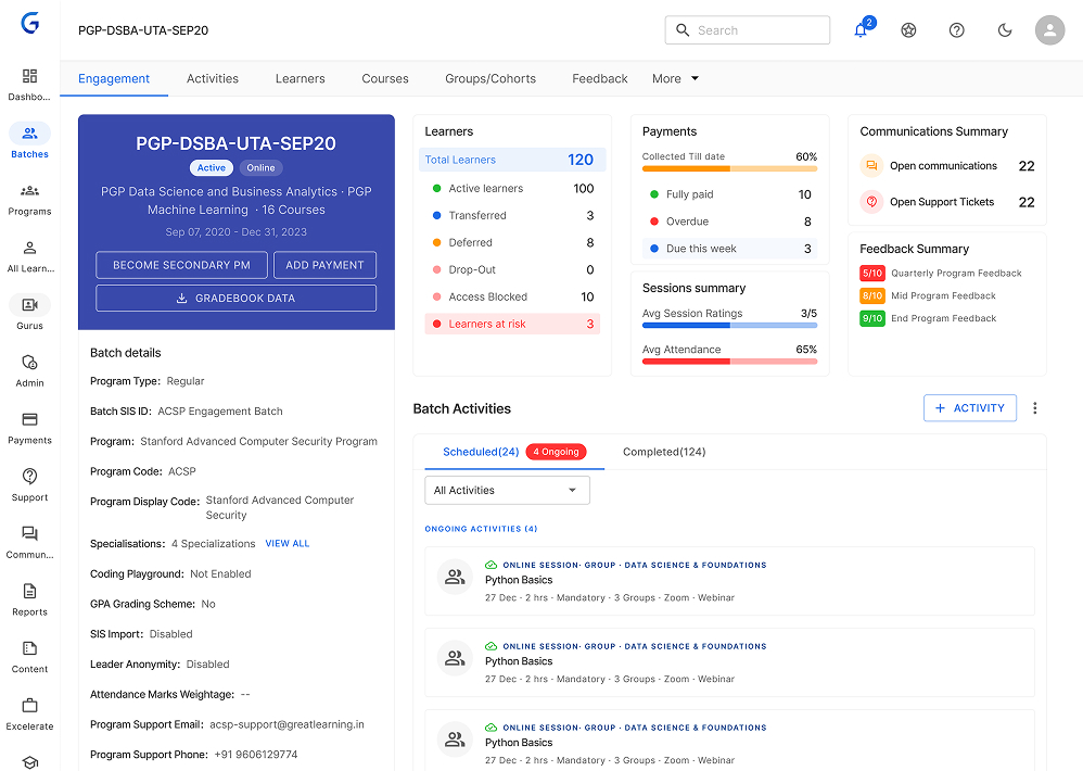 - Gather data on Program Manager activities at learner, batch, and global levels.